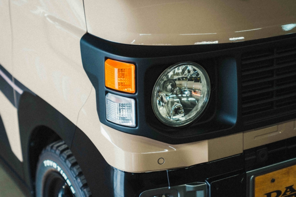 もし、70年代にデリカミニが存在したのなら――きっと、こんな顔をしていたのかもしれない。温もりのある光を放つヘッドライトで、この小さなクロカンは未来を照らしながら走り始める。