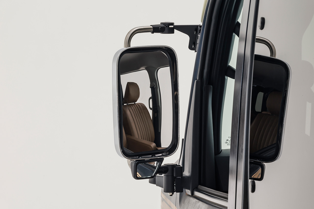 オールドスクールなフォルムが際立つトラックミラー。